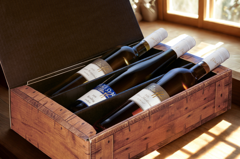 Bestelle unsere Probierboxen, die dir eine Auswahl von Weinen direkt nach Hause bringen.